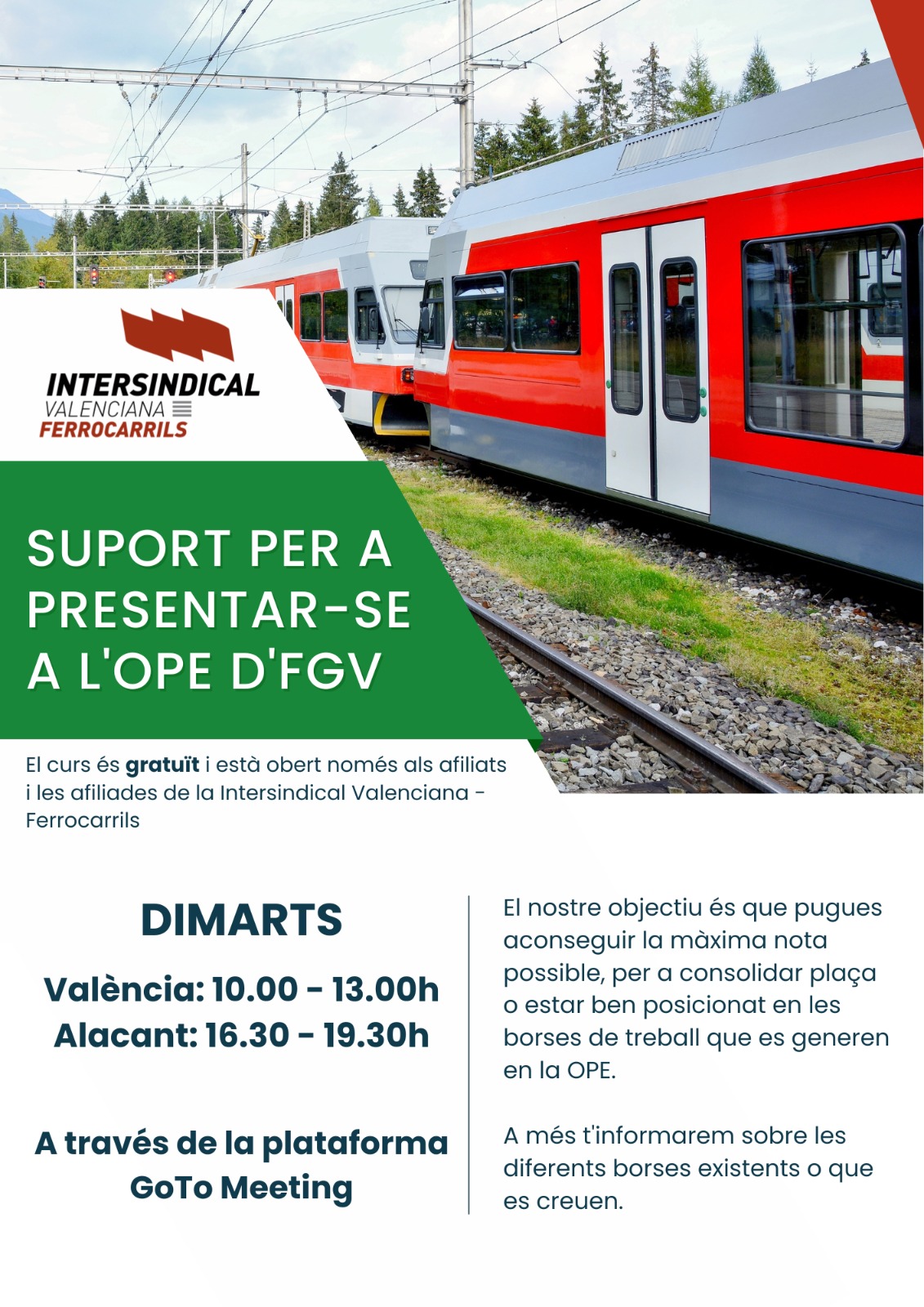 • El temari és el que es publique en el DOGV quan ixca publicada la convocatòria: Reglament de ciruclació; generalitats, línies de València i d'Alacant; llei valenciana de seguretat ferroviaria, llei d'igualtat, llei de prevenció de riscos laborals.