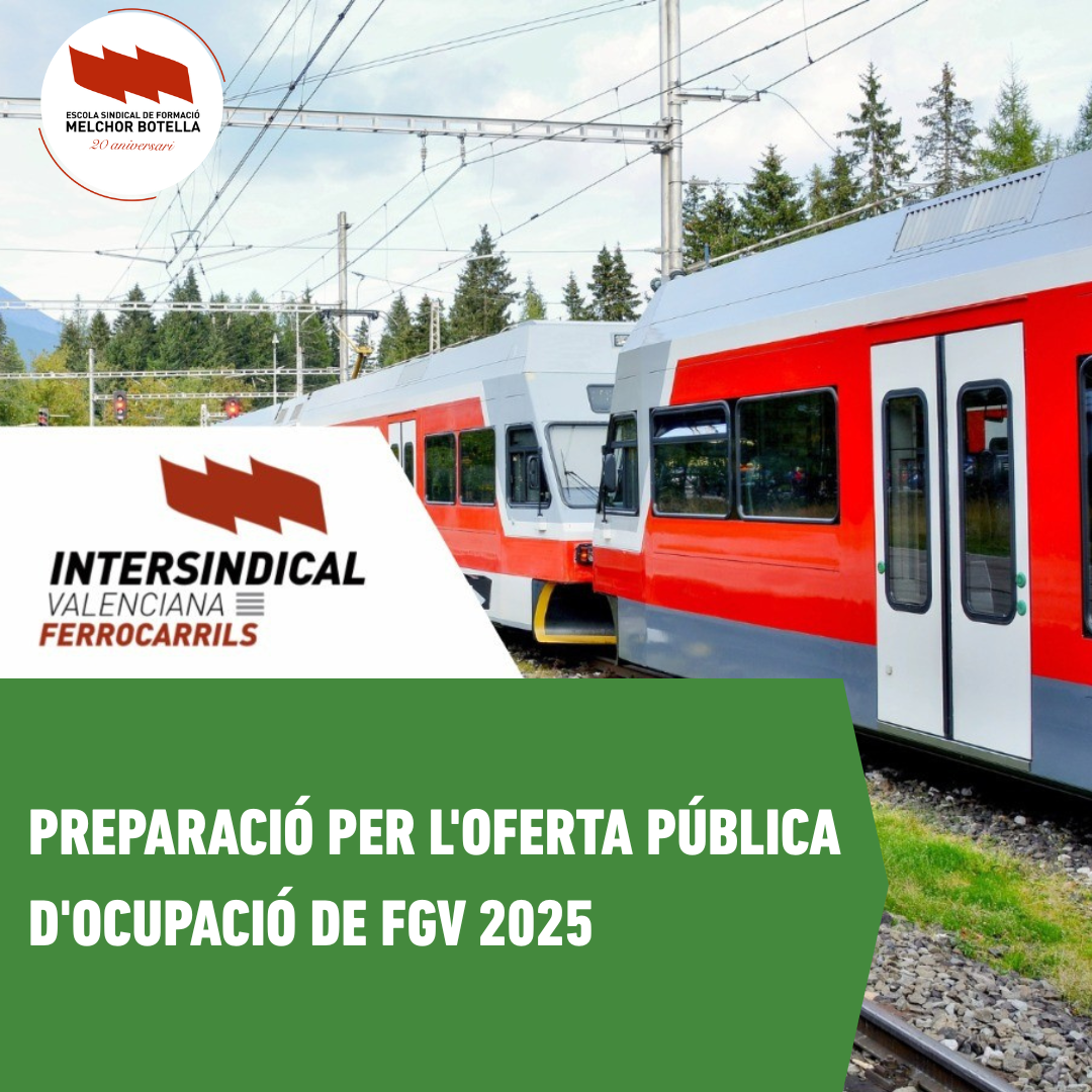 Convocatoria de plazas: 49 Maquinistas (17 ALC y 32 VLC) 13 Jefes de Circulación (7 ALC y 6 VLC) 6 GTC (Gestor del Tráfico Centralizado en Valencia.